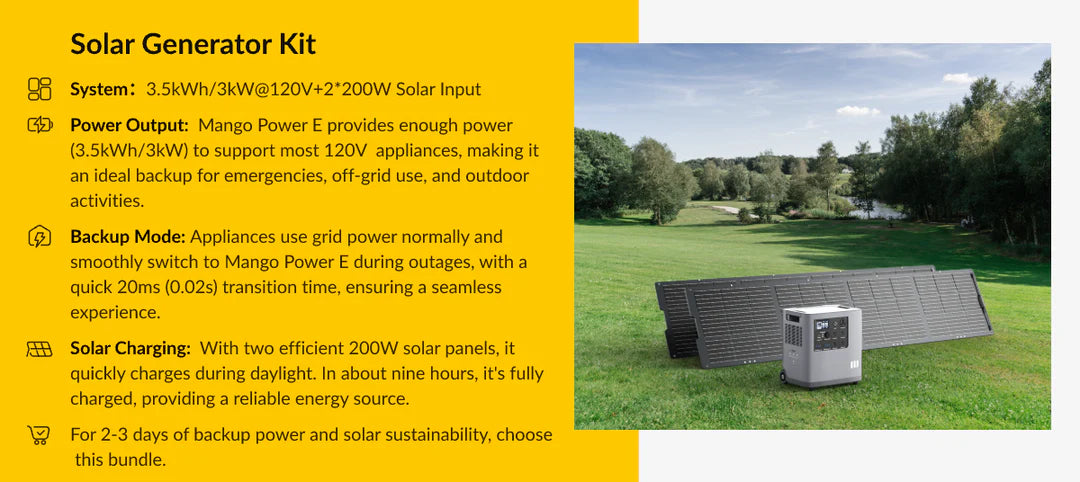 MANGO POWER| E Portable Power Station- Solar Generator Kit