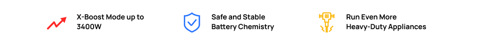 DELTA Max powers almost all the devices you need with a large 2400W AC output. With X-Boost proprietary technology, run appliances with an output of up to 3400W. Compared with similar portable power stations, DELTA 2 Max can power more devices while also preventing overloading and overheating.