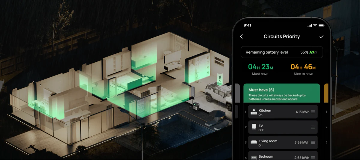 With Smart Home Panel 3, tag appliances by priority in the app. Essentials stay powered while non-essentials are throttled—extending backup time by up to 42%. EcoFlow AI Assistant fine-tunes power use in real time, adapting to weather, usage, and solar input.