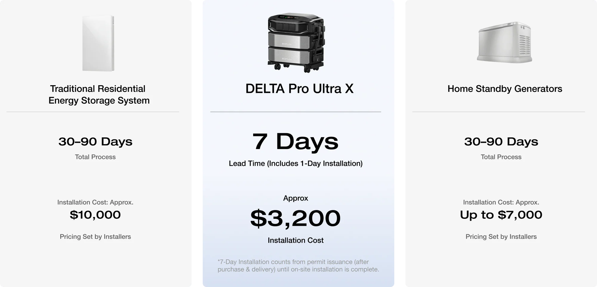 After your installation order is placed, we’ll match you with an EcoFlow Authorized Installer.*7‑Day Installation counts from permit issuance (after purchase & delivery) until on‑site installation is complete.