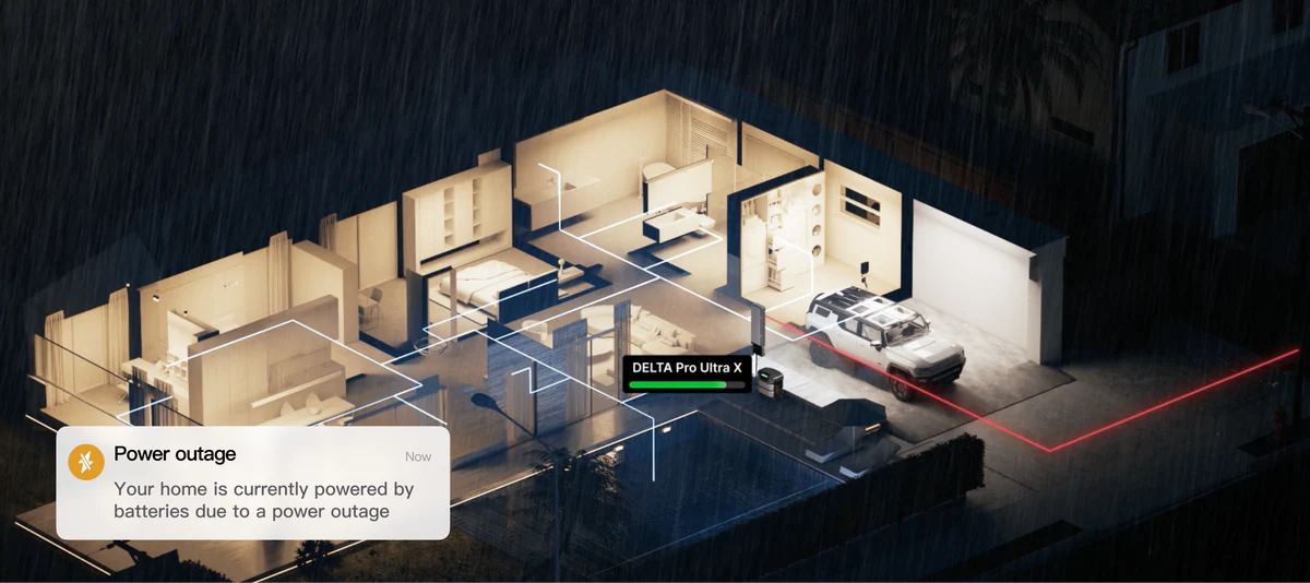 EcoFlow DELTA Pro Ultra X, paired with the Smart Home Panel 3 or Smart Gateway, switches your whole home from grid to battery power in under 20ms—faster than a blink. The lights stay on, Wi-Fi stays up, and even the game console keeps running. Zero delays. Zero disruptions.