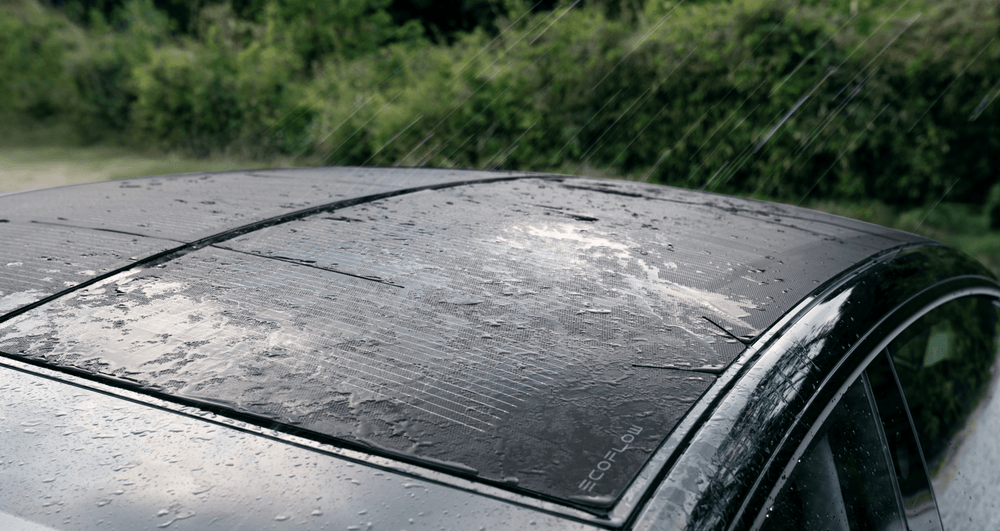 First, make sure to follow the installation instructions correctly. We use 3M VHB tape, a very strong double-sided tape designed for high-strength bonding. Even at high speeds, where the roof faces significant wind pressure, the VHB tape's strong adhesive power ensures that the EcoFlow HeatGuard Solar Film stays firmly attached to the roof. This tape is also designed to handle different temperature changes and the dynamic pressure from vehicle speed, so under normal conditions, the solar panel won't come off due to high speed.