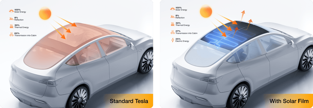 No Compromise on the Vehicle’s Overall PerformanceSmart fit, zero drag.Designed with an integrated flush-mount solution, the solar panel seamlessly adheres to the curved panoramic roof, preserving Tesla’s signature aerodynamic profile. With no additional air resistance, it maintains the vehicle’s low drag coefficient, ensuring uninterrupted driving performance and battery efficiency on long journeys.