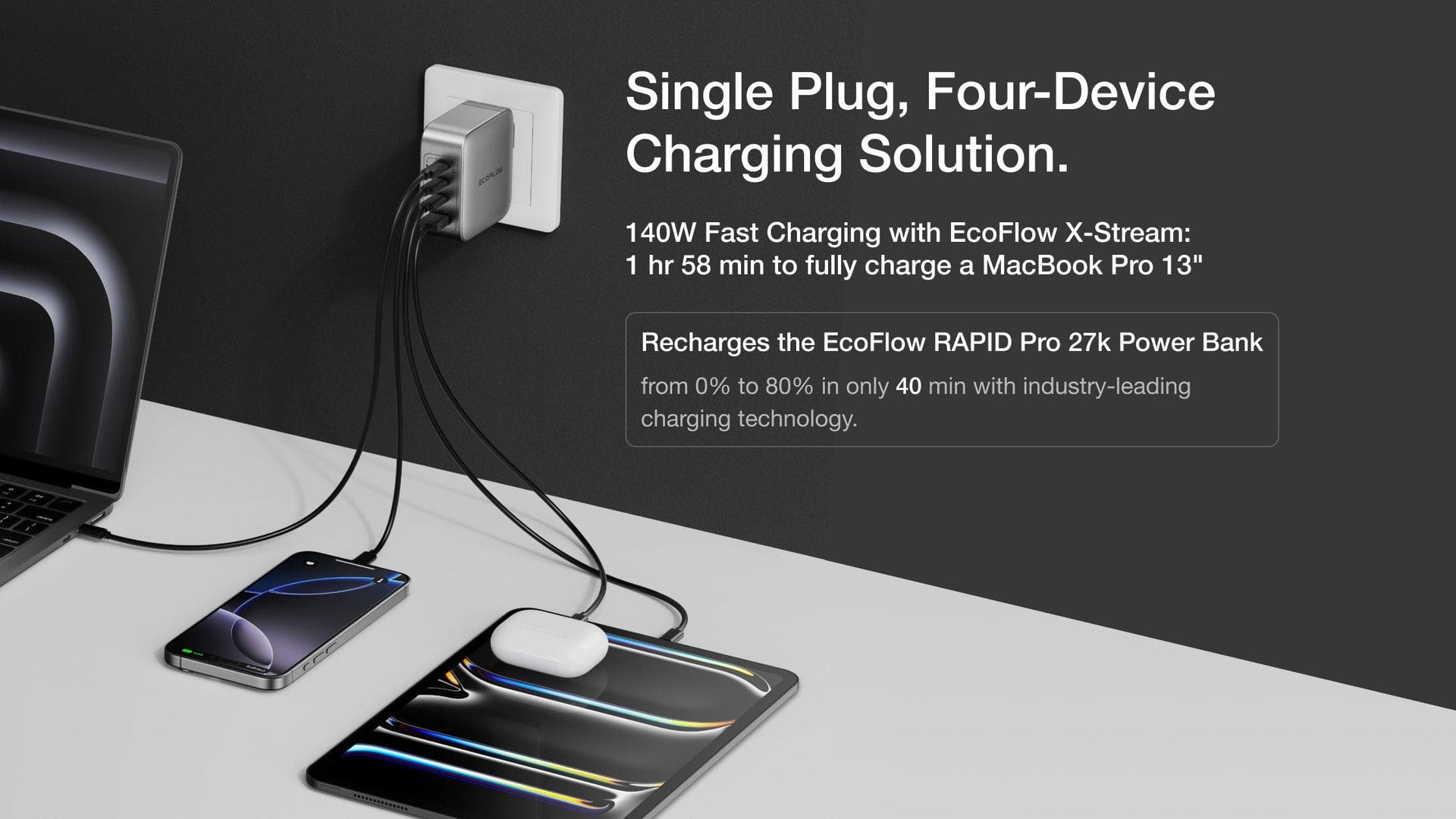 When charging multiple devices simultaneously, it intelligently adjusts the power output based on the charging needs of each device, ensuring efficient, stable, and safe charging.
