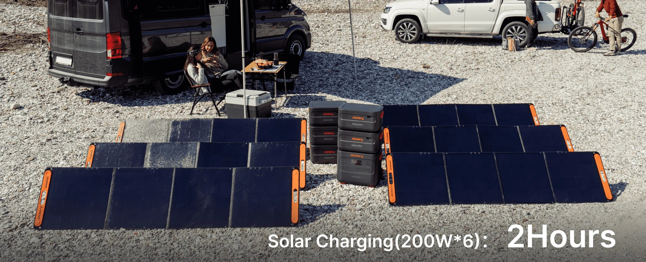 - Solar Charging in 2 Hours(SolarSaga 200 W X 6 Pcs )