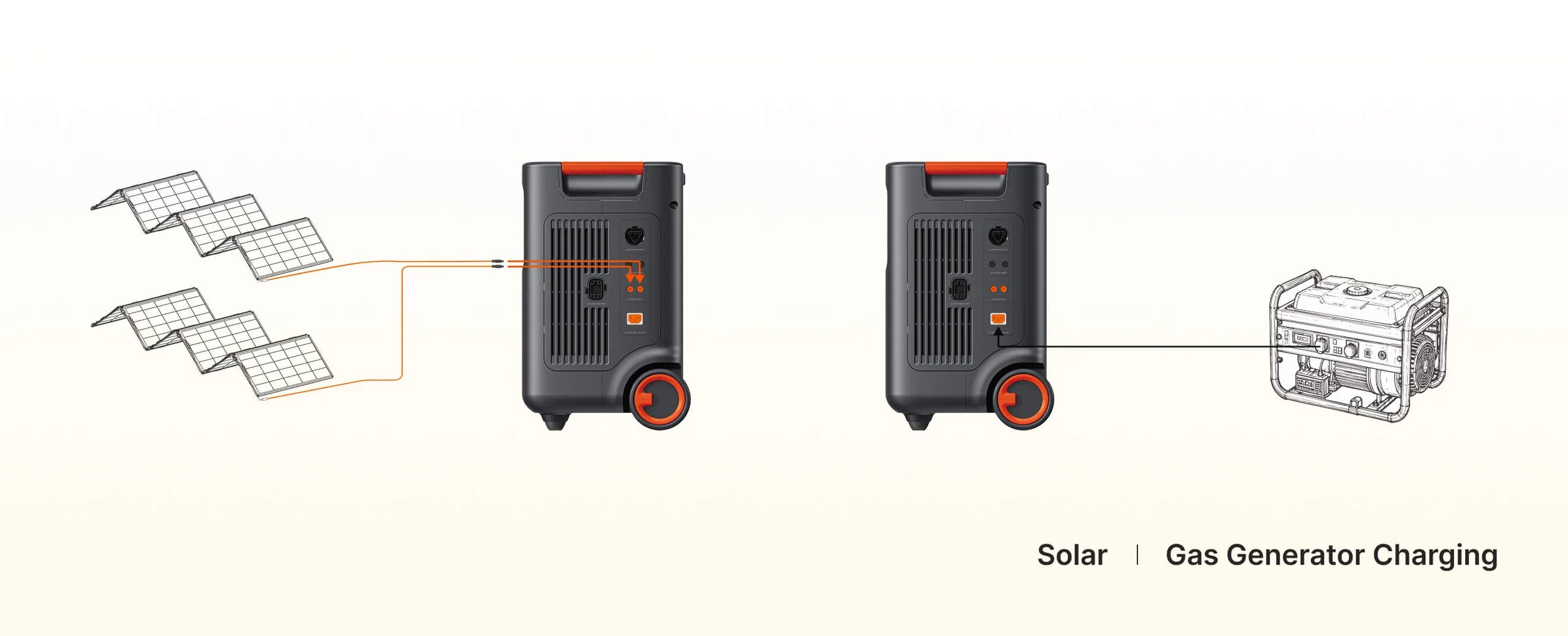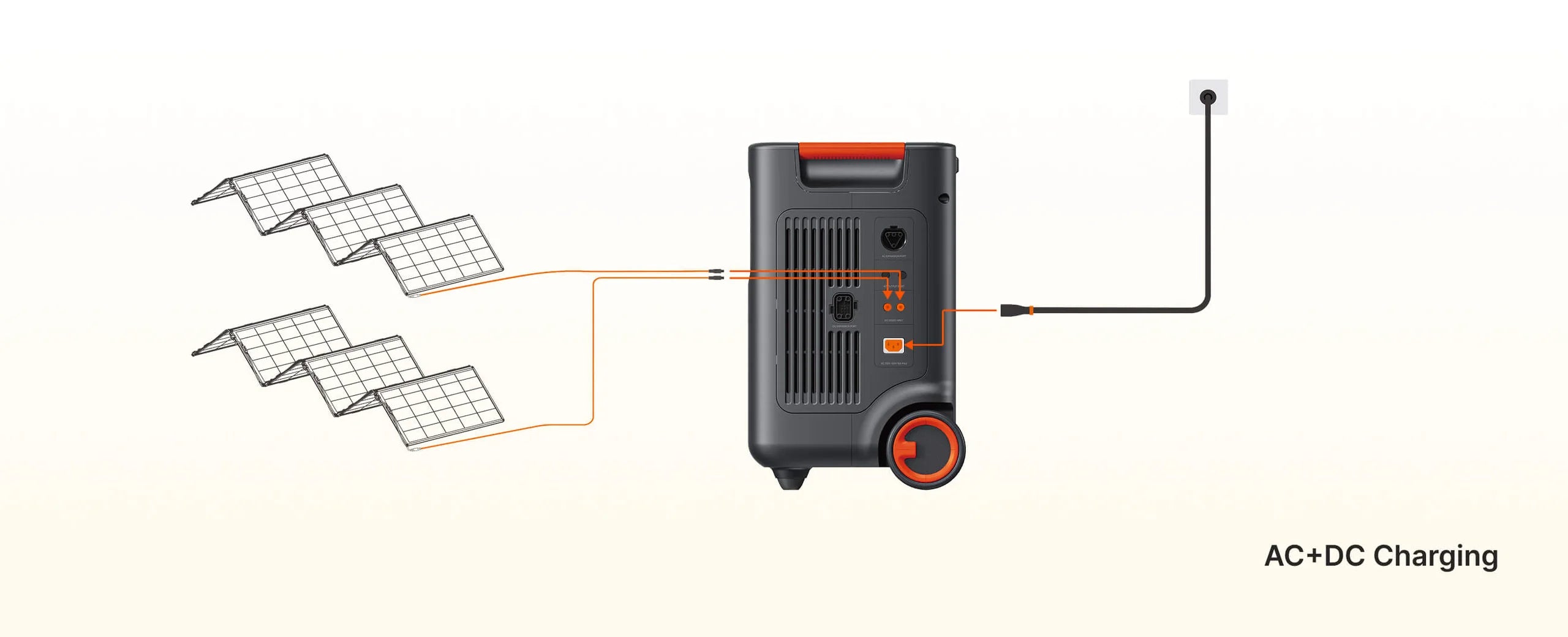 Jackery Portable Power Stations support various charging inputs, including AC charging, solar panel charging, car charging, and USB-C fast charging (on selected models).In most cases, Jackery Portable Power Stations support simultaneous AC and solar panel charging, allowing for faster recharging. However, note that most models do not support car charging and solar charging at the same time.