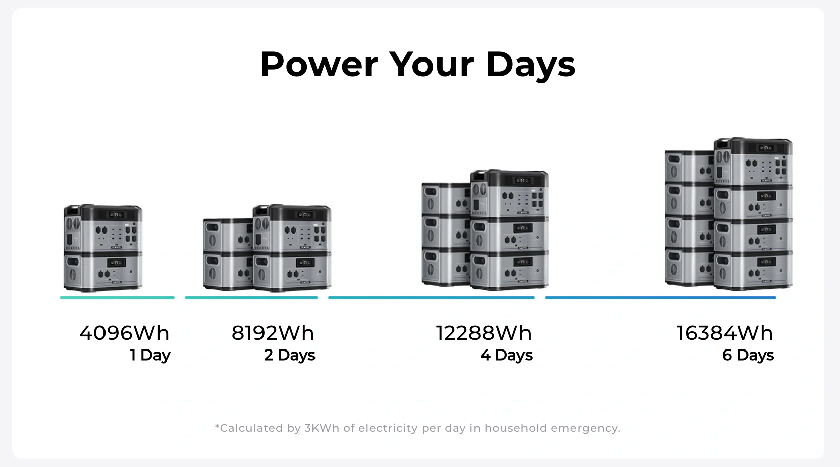 Up to 7 x B2000 for 16384Wh huge capacity.